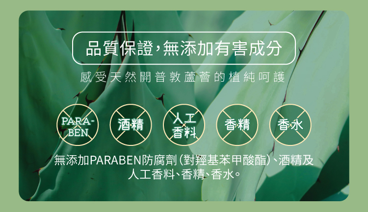 •無添加PARABEN防腐劑(對羥基苯甲酸酯)。