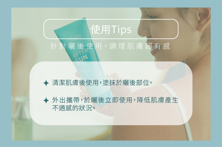 取適量塗抹於曬後肌膚,可每隔4~6小時重複塗抹,本產品含藥用酒精,可幫助降溫,不建議使用於臉部。