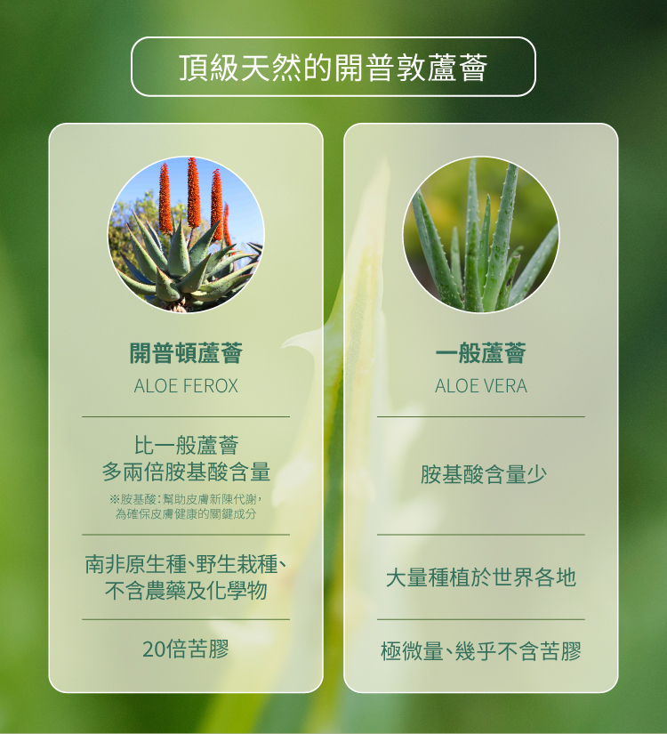 •開普蘆薈苦膠結晶與蘆薈膠結合,