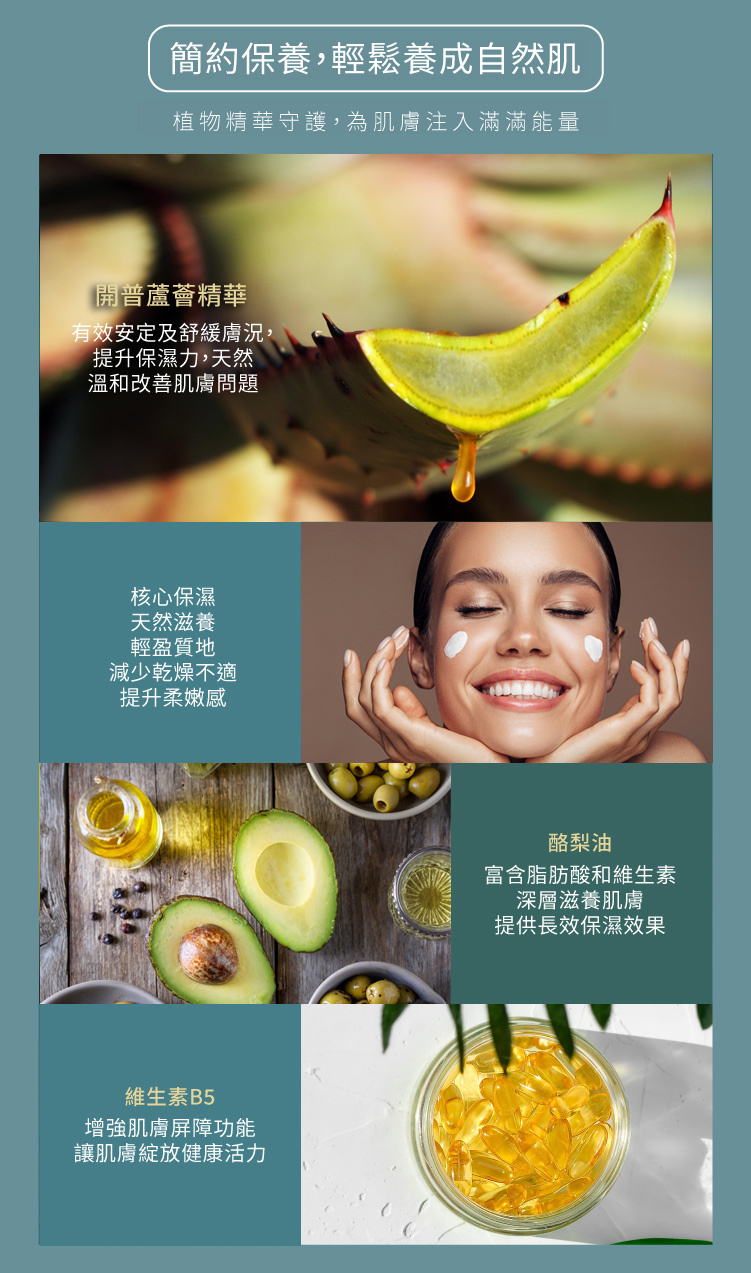 •添加野生開開蘆薈提取物與保濕甘油,幫助肌膚長效保濕。